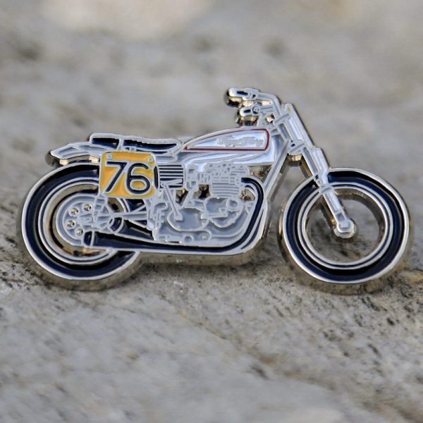 Deine Jacke braucht ein frisches Upgrade? Dann sind unsere Pins genau das Richtige für dich! Dieser Pin ist inspiriert von Vintage Flat Track Triumph Motorrädern.