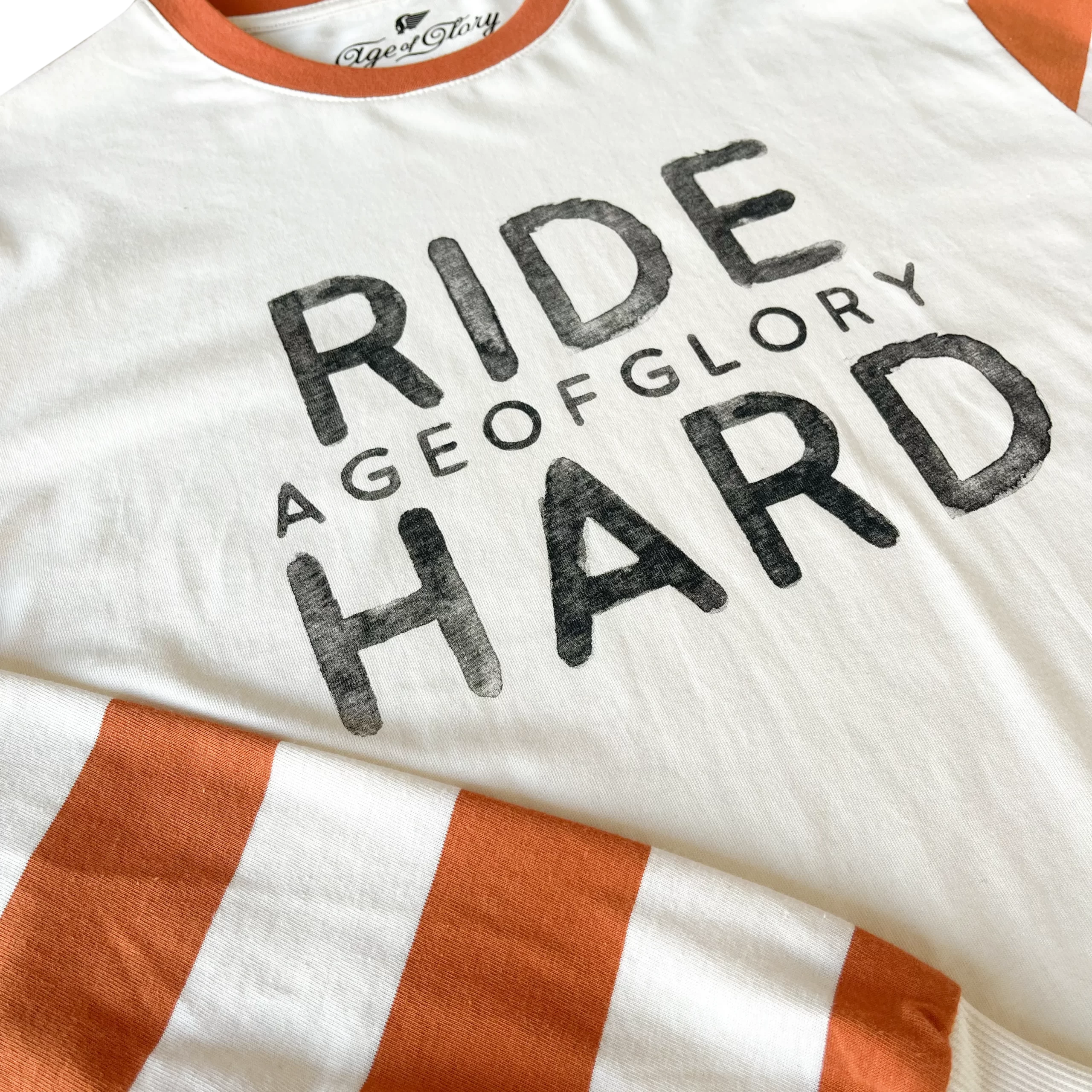 „Ride hard“ ist mehr als nur ein Motto – es ist eine Lebenseinstellung, eine persönliche Philosophie. Es ist die Haltung, die dich antreibt, immer mehr zu geben, über dich hinauszuwachsen und nach dem Unerreichbaren zu streben. Und den Weg dorthin zu genießen. Dieses Langarmshirt aus Baumwolle erinnert dich daran: Gib alles und überwinde jede Grenze!