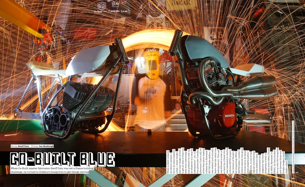 In the modern corner we have an exclusive first test on the Royal Enfield FT Twin, a bunch of AFT twins and singles, with their riders, and a big feature on Trevor Brunner’s gorgeous Turner Racing CRF450. In the middle is a rare Wood Honda monoshock framer and our own Yamaha MX250 vintage two-stroke. We have road bikes too, and they couldn’t be more different – Icon have served up a 124cu in, S&S-powered Original Sin, and our art ed has a Mutt 125 on test.
