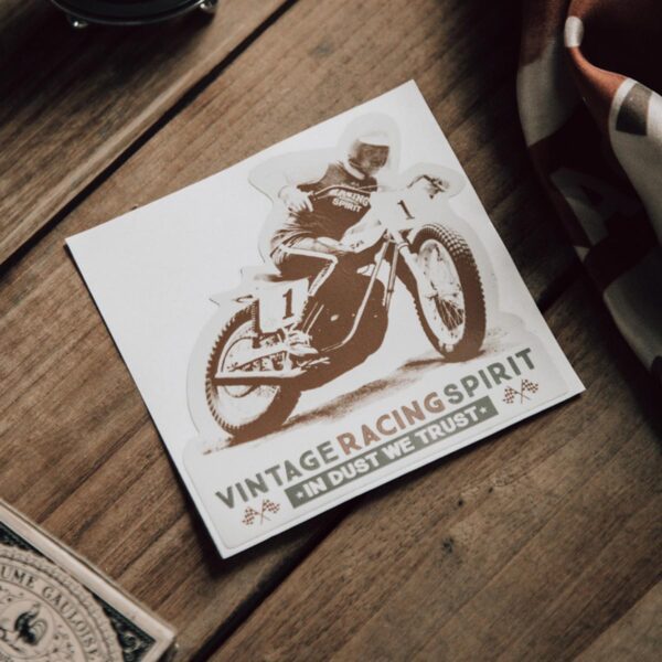 Aufkleber eines Old-School-Flat-Track-Fahrers.