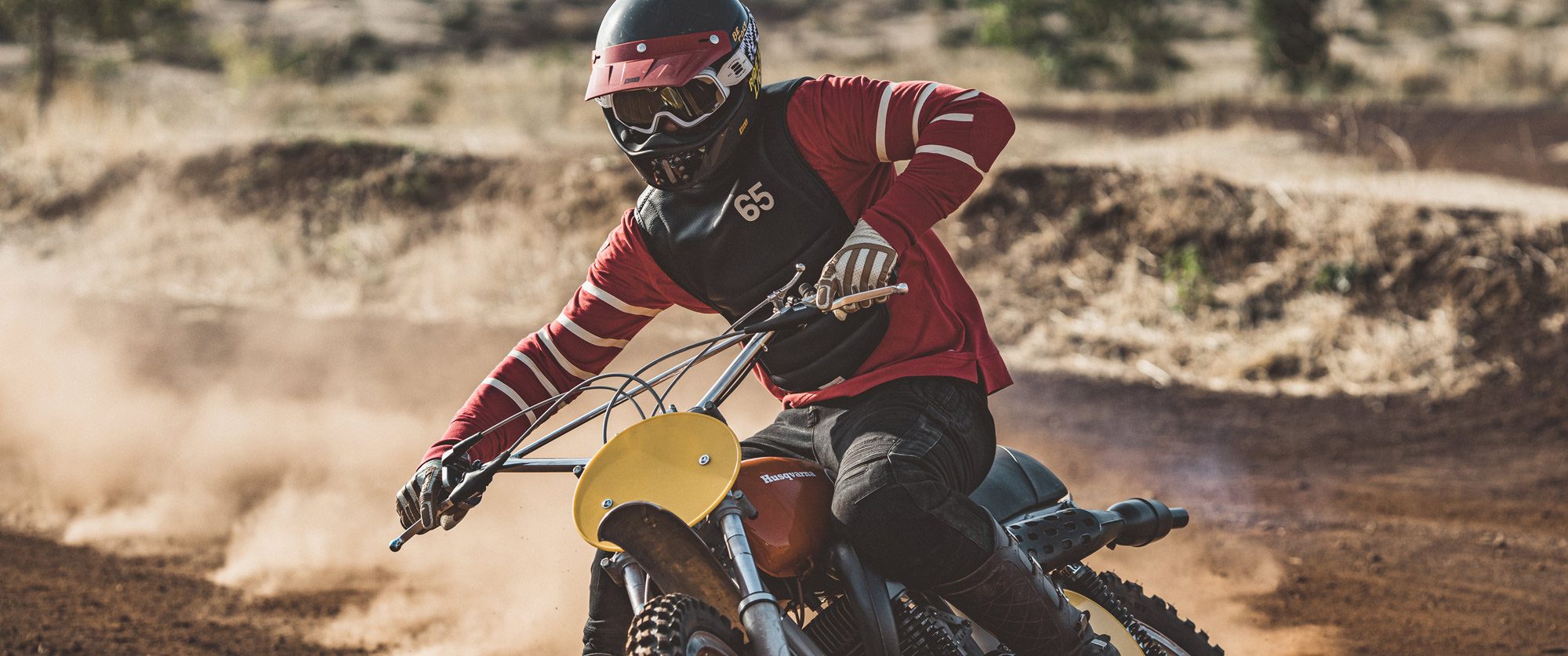 ”There was a time when the riders, mostly from desert races or motocross, wore pretty breastplates, slightly padded, as protectors; protectors rather sketchy to tell. It was before the time of the racing bibs which were mainly used by the sponsors of the events.”