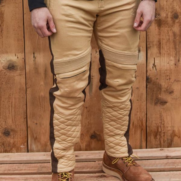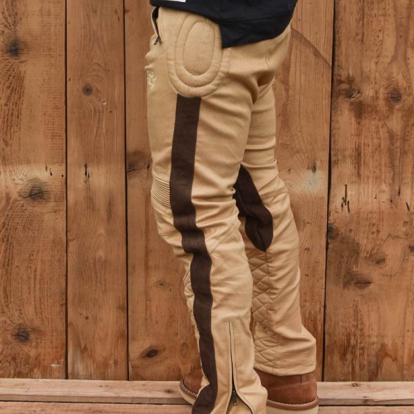 Pas évident de trouver un pantalon au look vintage mais qui soit aussi confortable et pratique pour rouler en moto. Look inspiré des pantalons de course en cuir des années 70, notre DESERT PANT est le pantalon qui vous suivra partout lors de vos aventures, qu’elles soient urbaines ou hors des sentiers battus. Il vous laissera libre de vos mouvements et vous assurera une bonne protection avec une doublure en Kevlar et les protections amovibles aux hanches et genoux. – Coton Twill stretch 12oz – Renforts en tissu Dupont© Kevlar au niveau du fessier, hanches et genoux – Renforts matelassés au niveau des hanches – Protections amovibles aux genoux et hanches incluses (CE – EN1621-1) – Renforts nubuck à l’intérieur des jambes au niveau des genoux – Zips en bas des jambes à l’arrière – Léger matelassage des jambes au niveau des tibias – Soufflets d’aisance au-dessus des genoux et en bas du dos (sous la ceinture) – Pantalon homologué CE EN17092-2:2020 - AAA