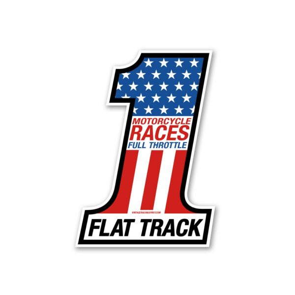 Sticker du fameux Number 1, pour les vainqueurs du championnat US de flat track: le Grand National Championship. – vernis anti-rayures et anti-UV – Découpé à la forme – Taille: 4,5x7cm