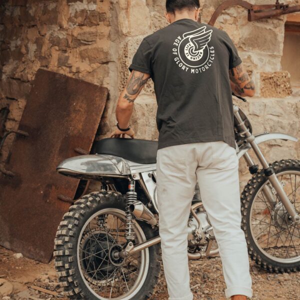 42,00€De retour à la demande générale, nous avons relancé notre désormais célèbre design de tee-shirt Champ, mais cette fois-ci en version manche-courtes. Nous avons tous un champion qui dort en nous, quelles que soient nos compétences sur une moto, les sensations sont là ! C’est ce qui vous pousse à atteindre le niveau suivant. Être sur une ligne de départ vous donne la chair de poule et une dose d’adrénaline. La course, c’est la vie ! Alors déployez vos ailes et amusez-vous !