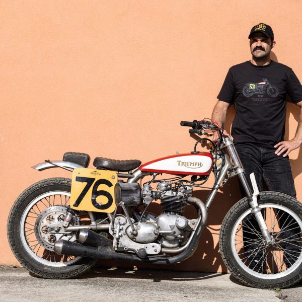 39,00€Le prix initial était : 39,00€.19,50€Le prix actuel est : 19,50€.Voici un nouveau modèle de la série Legendary qui rend hommage aux motos légendaires, en tout cas pour nous chez Age of Glory ! Au début des années 70, un cadre particulier était utilisé sur les motos en flat track : Il s’agissait du cadre Trackmaster. Un cadre dont la poutre principale faisait office de réservoir d’huile et qui avait des caractéristiques étudiées spécifiquement pour donner aux pilotes, de Triumph ou BSA principalement, plus de performance. Et il a prouvé sur la piste qu’il était ! Nous avons la chance d’avoir une Triumph Trackmaster de 1974 pour rouler en flat track et nous l’adorons !