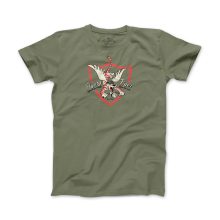 Ce tee-shirt est un clin d’œil aux patchs qu’arboraient les aviateurs Américains lors de la seconde Guerre mondiale. Chaque escadron avait sa propre mascotte et nous avons détourné un peu le design original pour lui donner la touche Age of Glory.