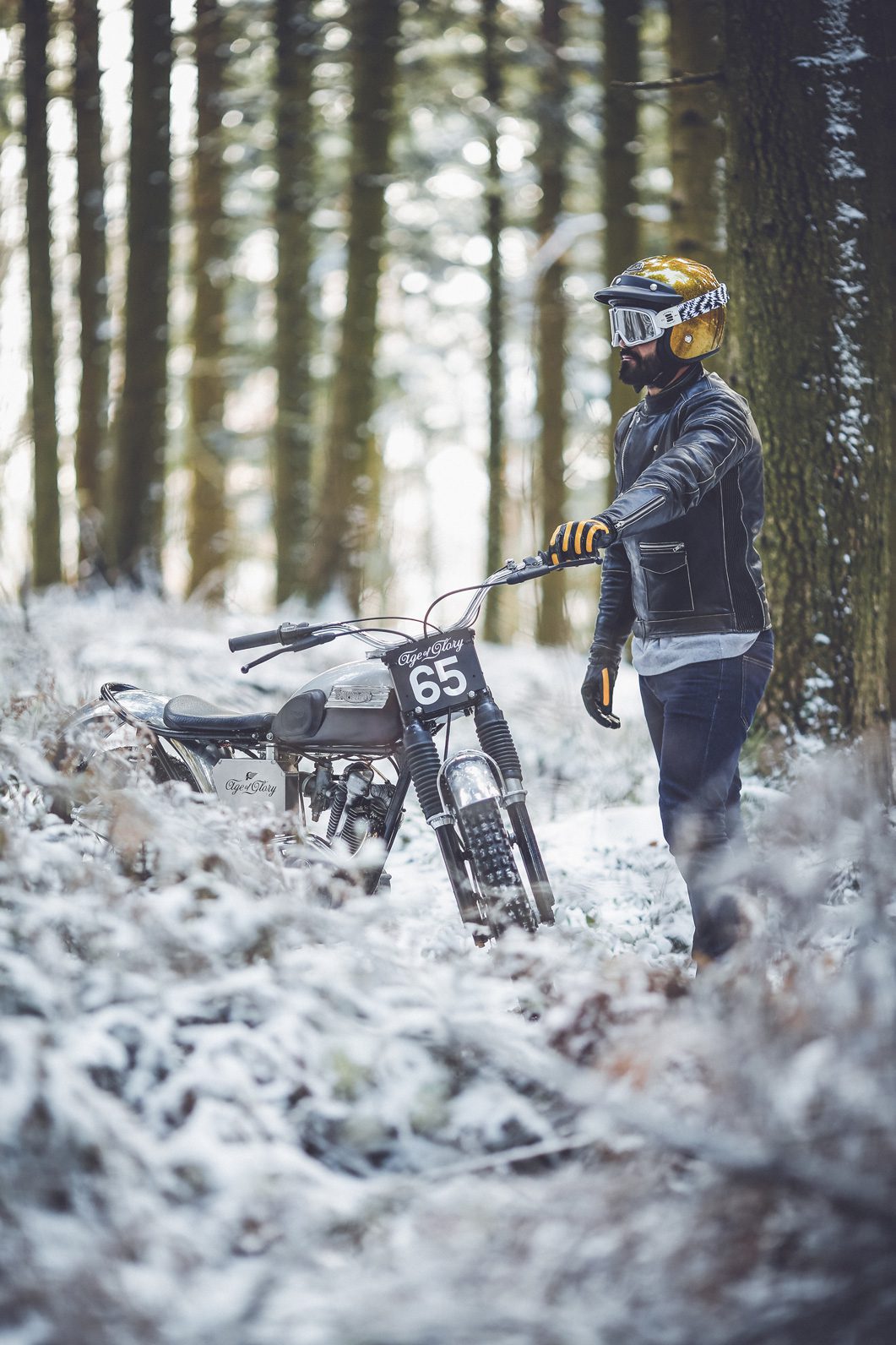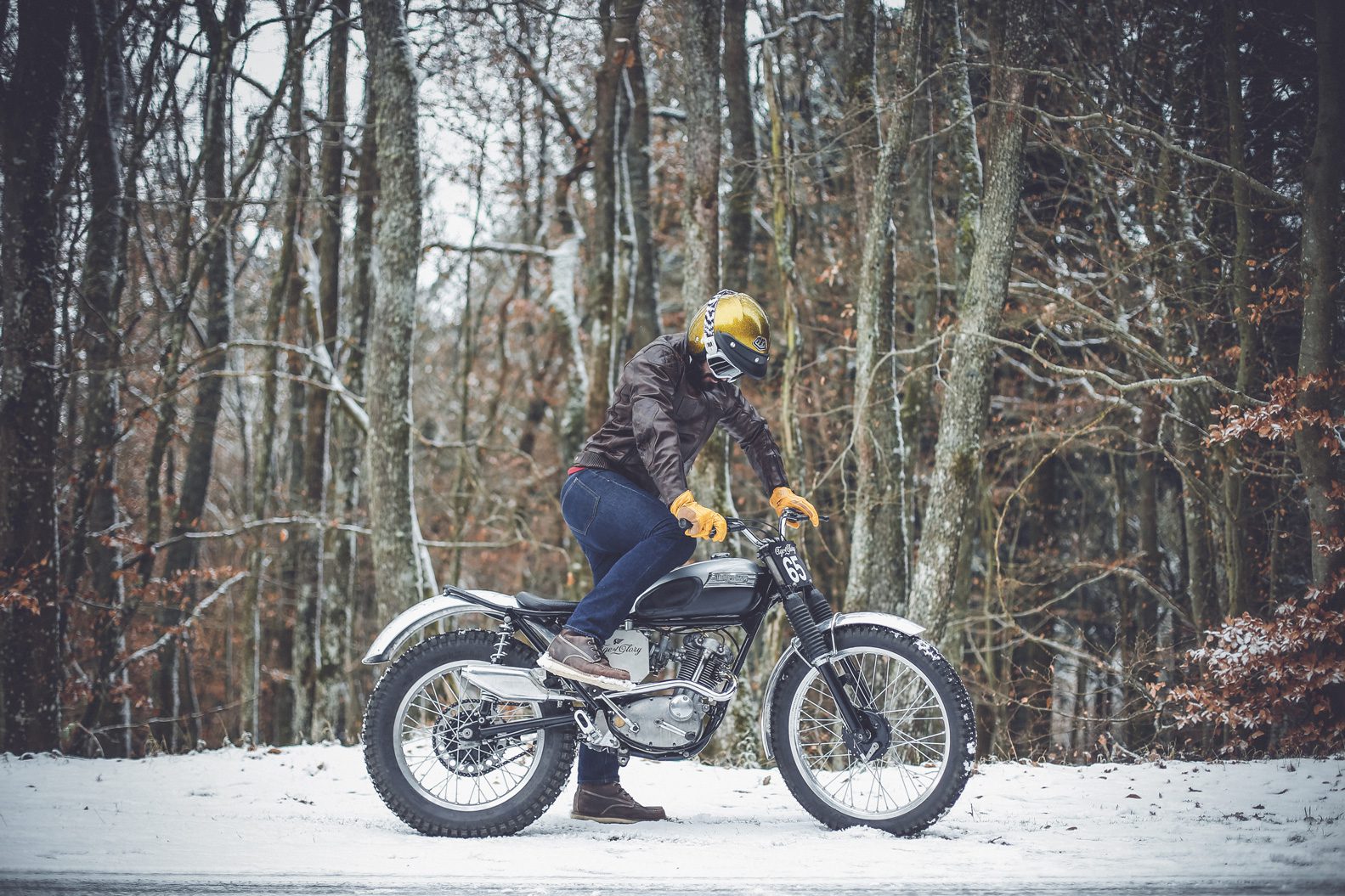 Nous avons pris ma vieille Triumph T20 Tiger Cub de 1965, et ce fut probablement la seule fois qu’elle a roulé dans la neige… Un moment bien fun. Voici quelques photos de cette matinée…
