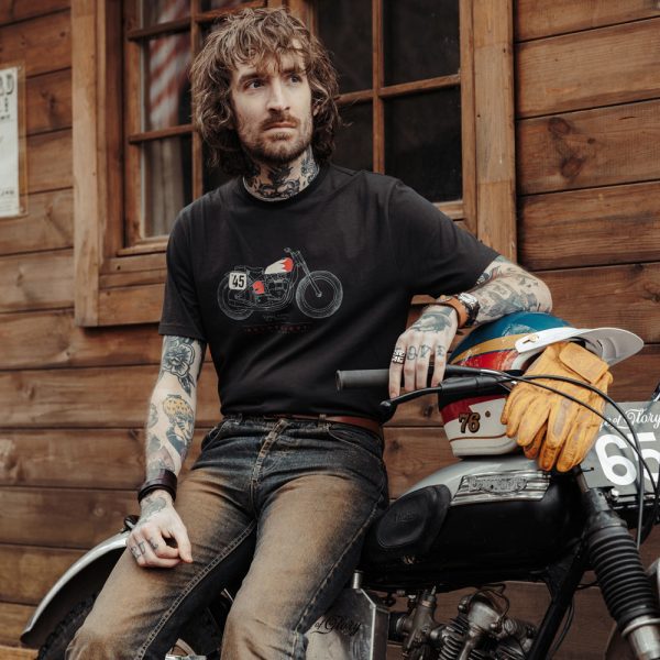 If you follow the brand for a while, you know our love for vintage motorcycles. With the Legendary series, we drawn bikes that we really like because of many different reasons. Could be because of the riders that were riding it, the changes that these bikes have bring to the market or, and probably mostly, because of their beautiful aesthetic. It's our own ranking of course but we are sure you love them too! This T-shirt highlights a motorcycle with a rigid frame based on a Triumph motorcycle with a vintage tracker look. - 100% cotton - Design is screenprinted on the chest - Sold in a popcorn packaging
