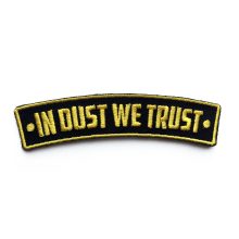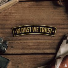 A “In Dust We Trust” embroidered patch to decorate your motorcycle jacket or your racing jersey.