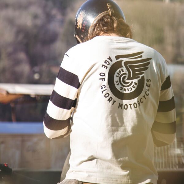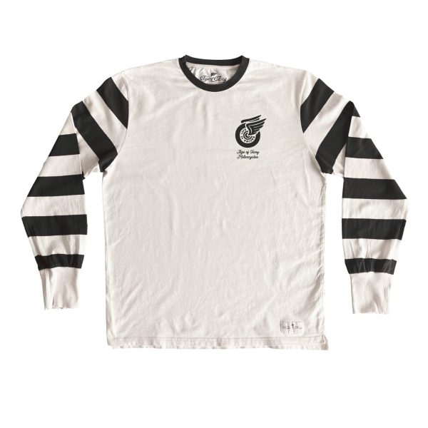 This Racers Jersey is a light and comfortable jersey and will be ideal for your motorcycle outings, whether in enduro or cross, and even for rides with friends. In a classy white and black design, it has a retro twist with slightly quilted elbows and ribbed edges with longer wrists, which can be folded as you wish. - 100% polyester - Stitched Padded elbow pads - Stitched embroidered patch on left sleeve - Longer wrist cuffs
