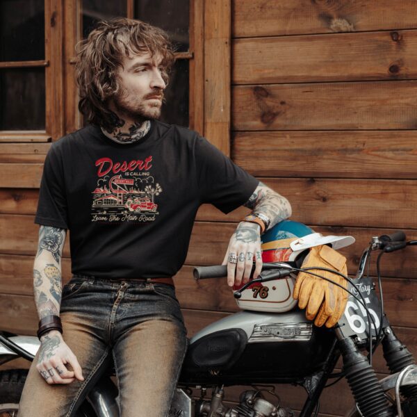 When you’re riding your motorcycle in wide desert areas roads, feeling the air on your face, and earing the sound of your machine, you feel unbeatable, wild and free… Just like a superhero! - 100% cotton - 180g - screenprinted design on chest