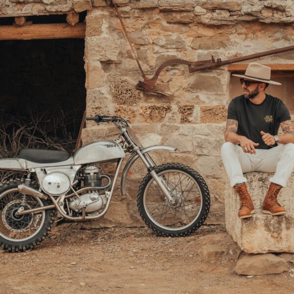 89,00€Original price was: 89,00€.62,30€Current price is: 62,30€.You are ready for the race… Oil level and tyre pressure are checked… The gas too… Just adjust your helmet and your goggles, and let’s go! But no pressure because it’s all about having fun! These old bikes must be handled with tact and above all some style! You are in charge for the riding, and we help you for the outfit with this long-sleeve T-shirt in the spirit of jerseys that could be worn by amateur desert racing riders of the 70s. -100% cotton - Stitched Pads on elbows -Chainstitch embroidery on the chest -Longer wrist cuffs