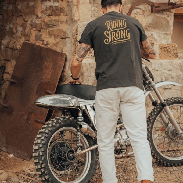 Riding strong and enjoying the road… it is all said! You just have to grab your helmet and gloves and kick your bike to follow this mantra. - 100% cotton - 180g - screenprinted design on heart and back