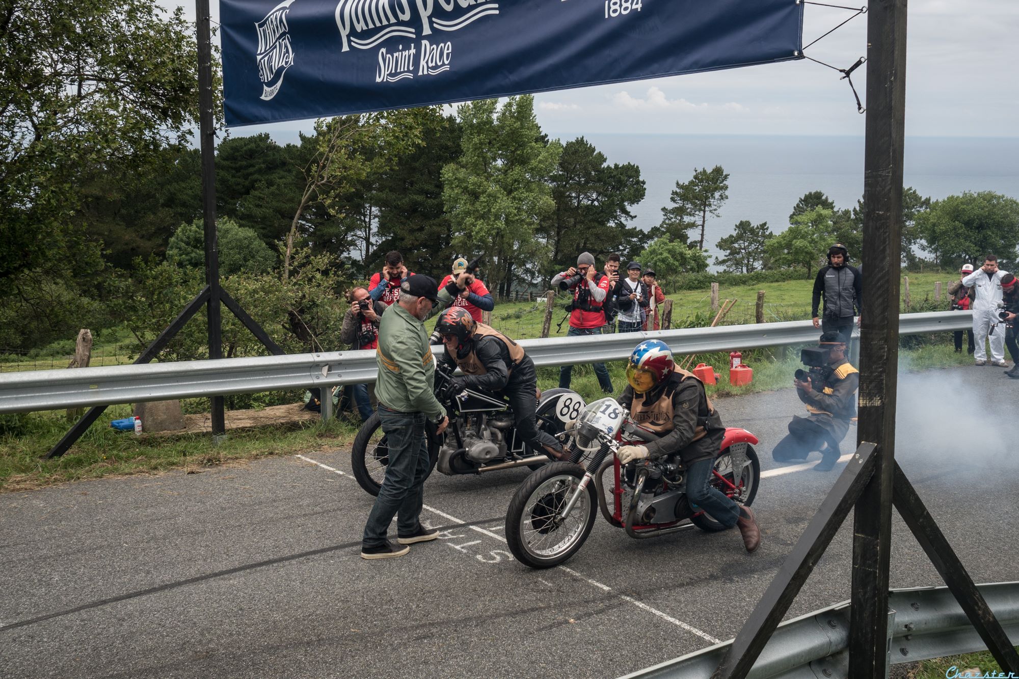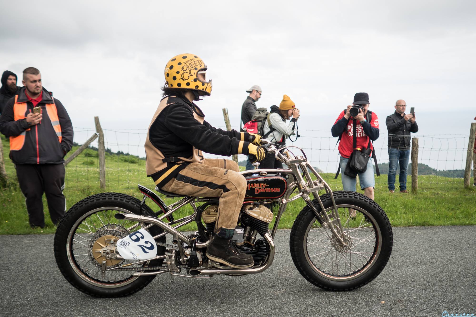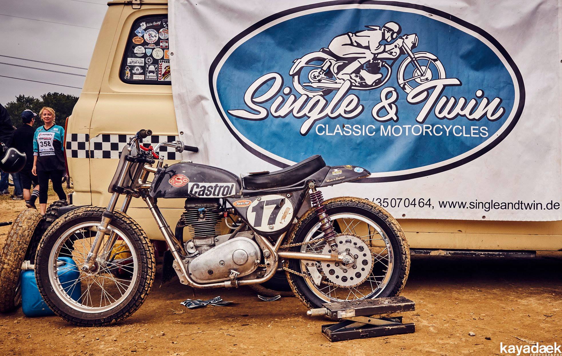 Like last year, we took part to El Rollo Flat Track race. When we arrived at the track in the morning, it was damn raining and the track was so muddy that we thought the race wouldn’t take place. Finally it stopped raining and sun came back. The race schedule was 3h postponed and we finally race on a good track.