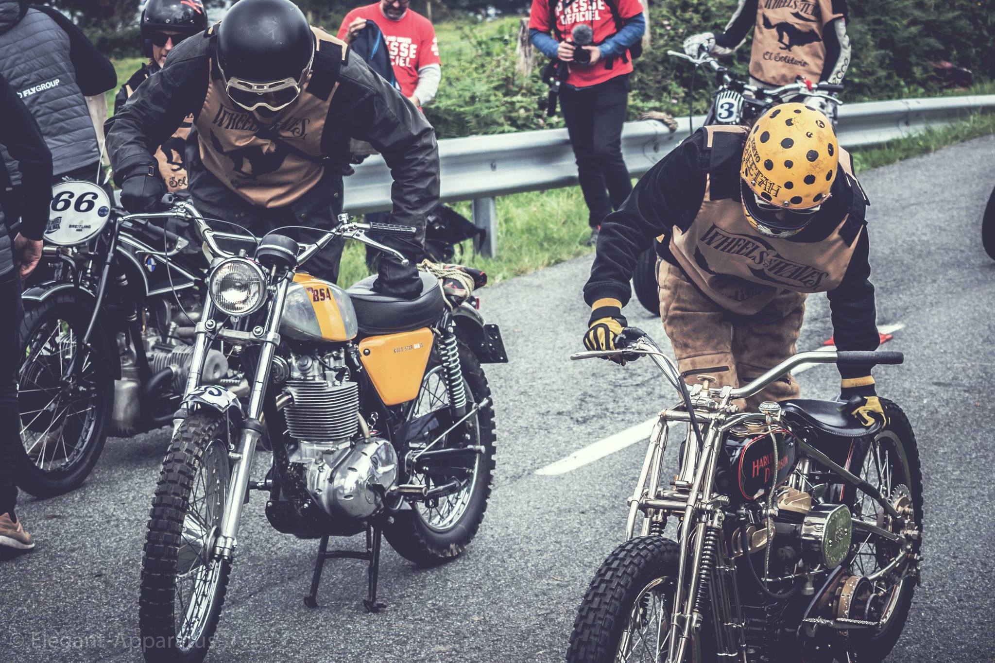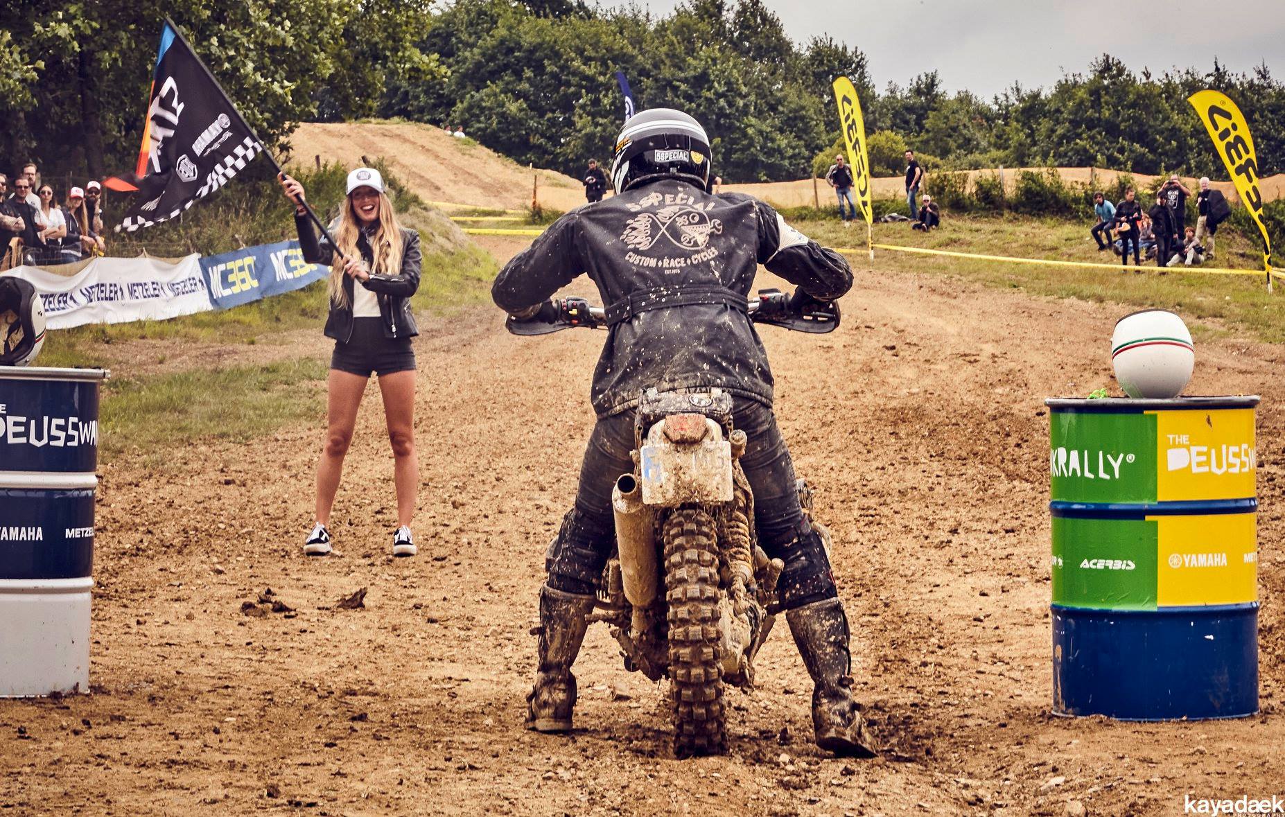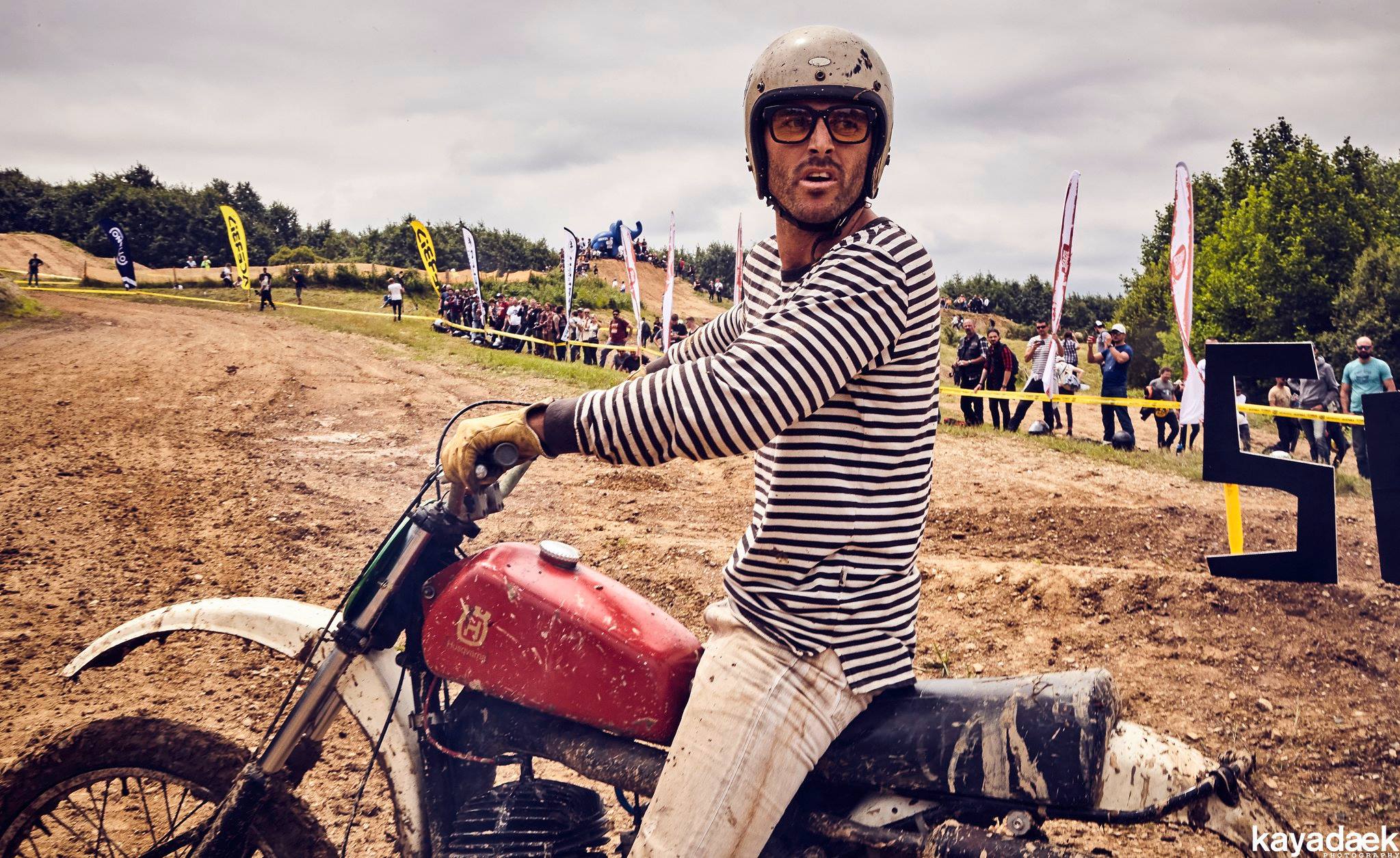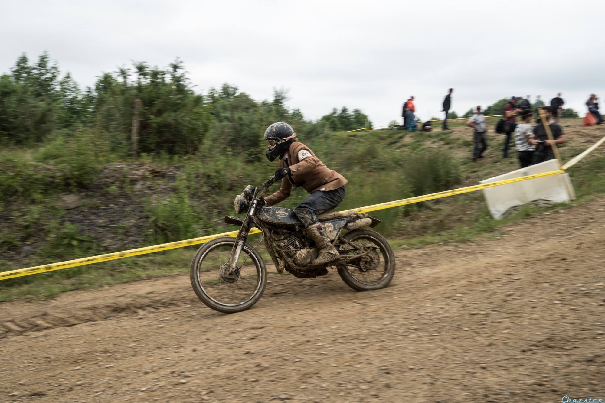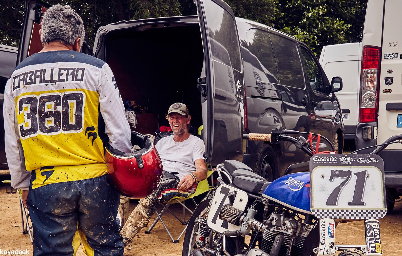 My class was a big carryall… Not easy to compete against modern 450 mx or enduro bikes…. But the main goal was to have fun. I had the chance to ride a heat with Wilfried Delestre (French Flat Track champion) and Jean-Michel Bayle #111…. An true honor… Despite all this, I reached the class final, but in the first turn, blocked in the pack, I touched a wheel and got kicked to the outside and found myself at the last place…. I finally overpassed a few riders to not finished at the last place but didn’t make it to the Great finale. Not a big deal, we spent such a great moment.