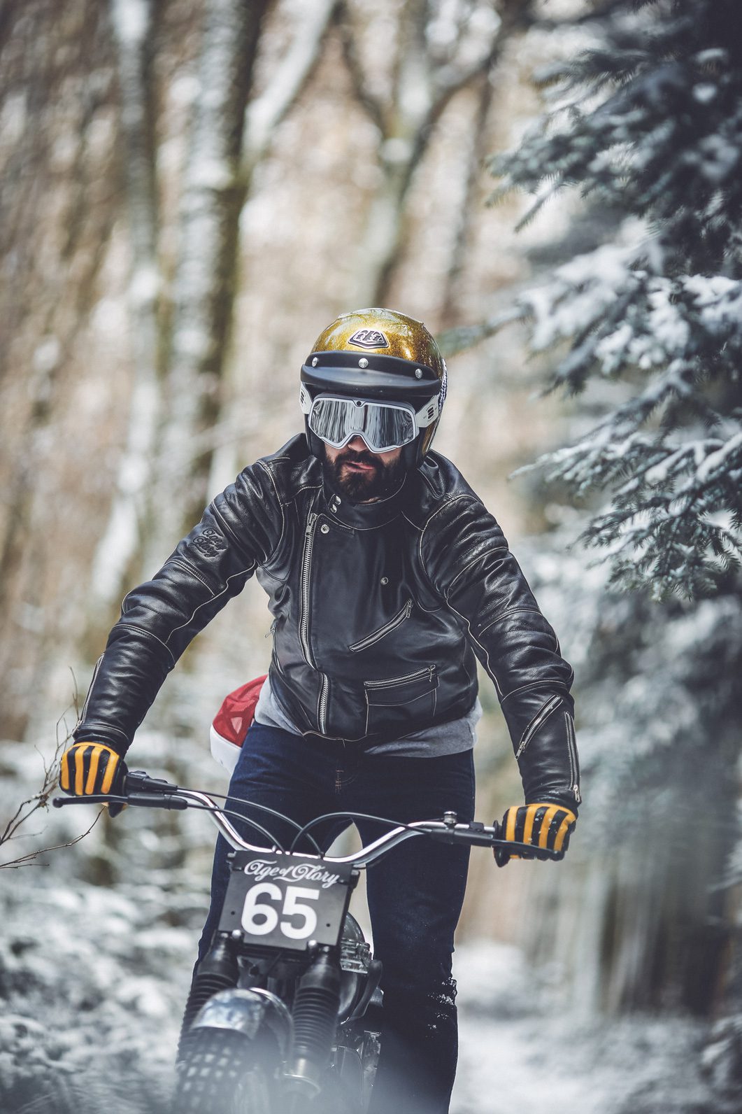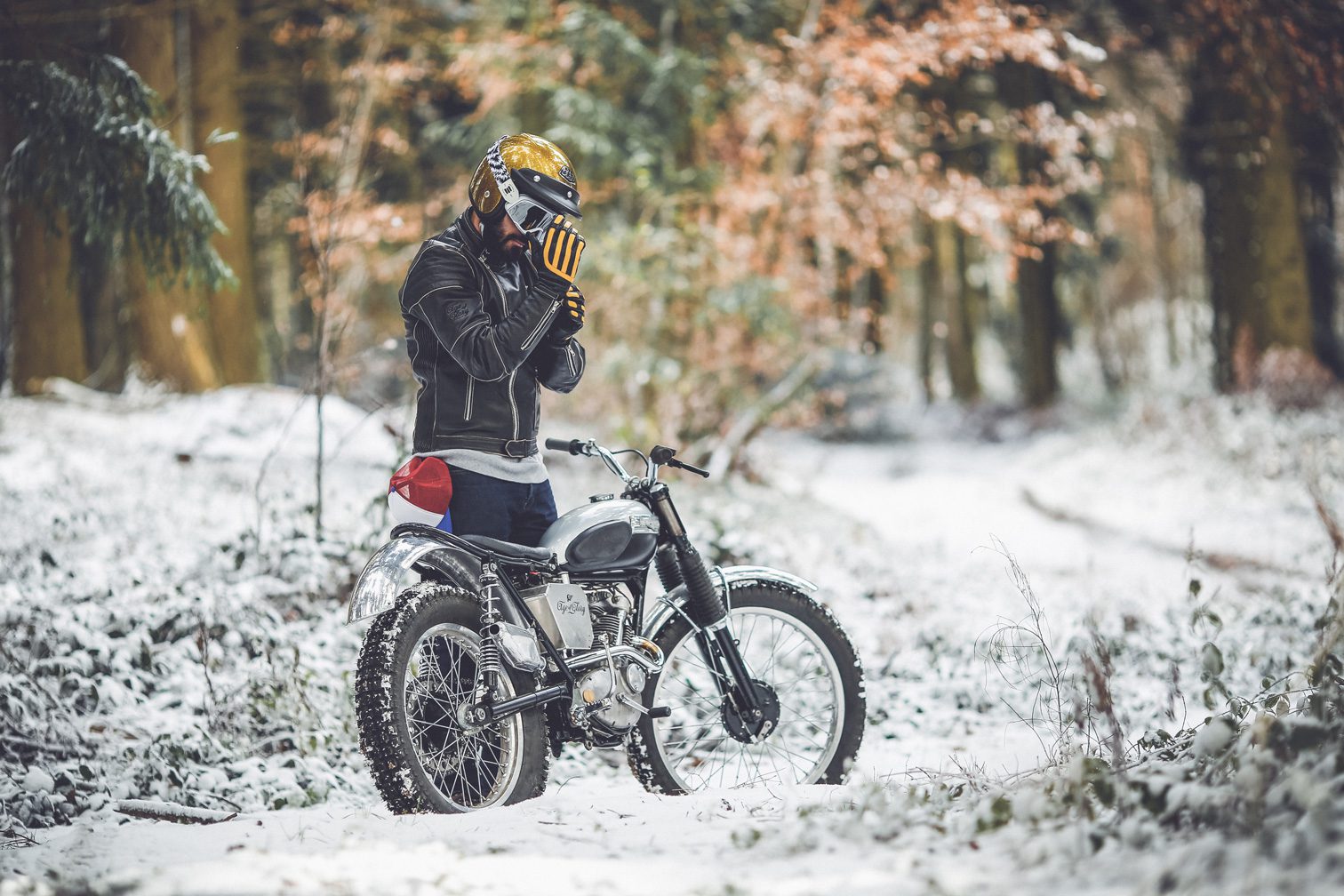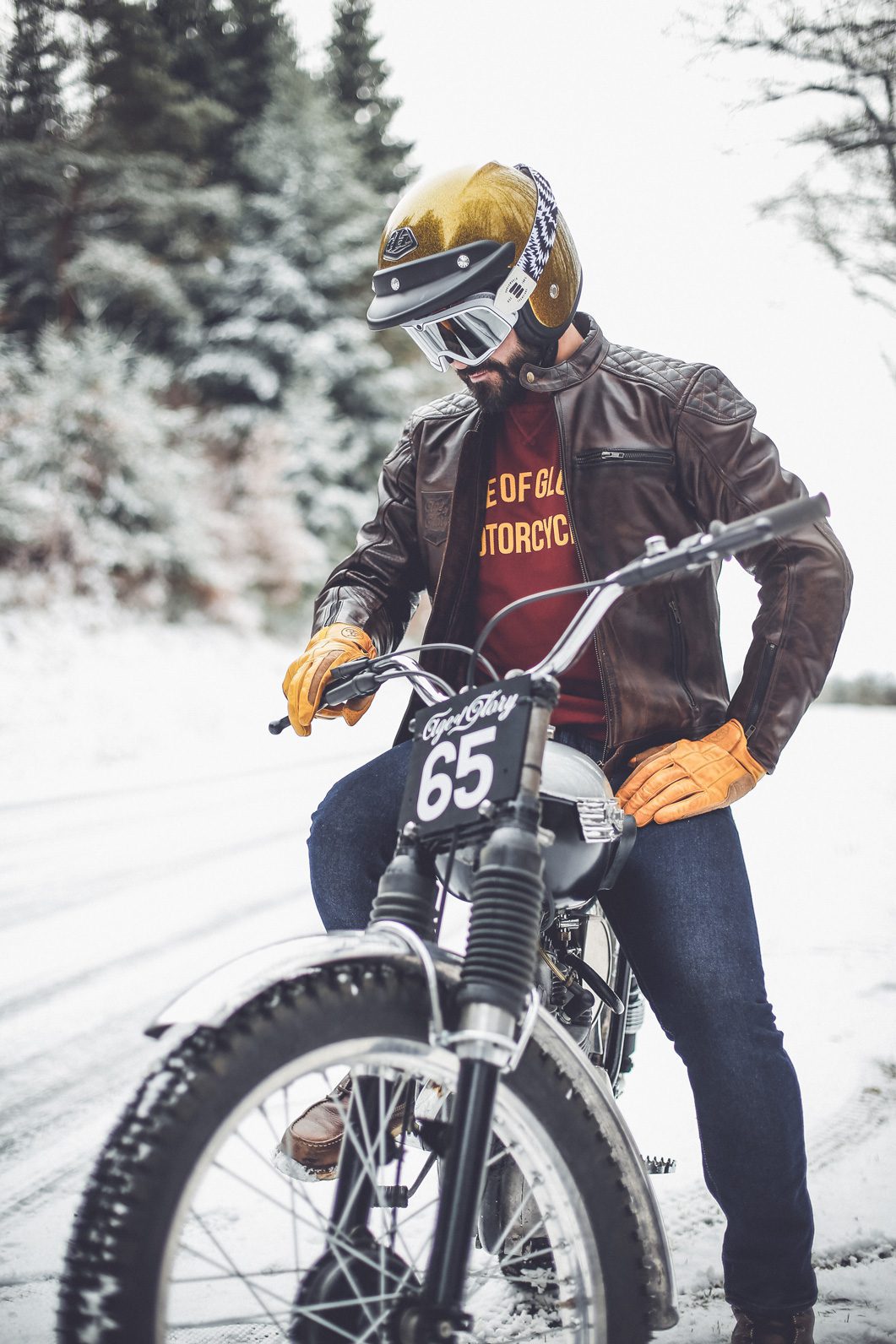 We took my old Triumph T20 Tiger cub from 1965, and it was probably the first time she was riding in the snow… A lot of fun for sure. Here are below some pics of this session…