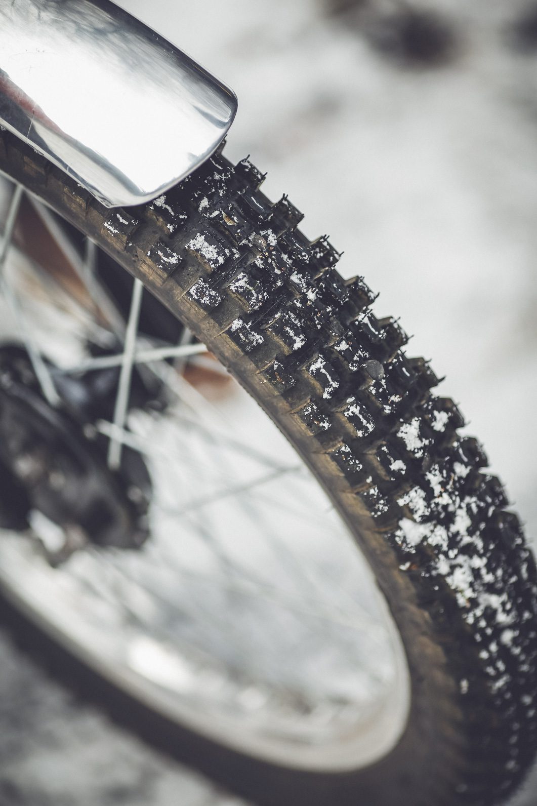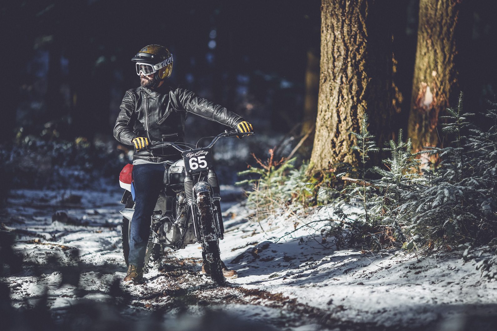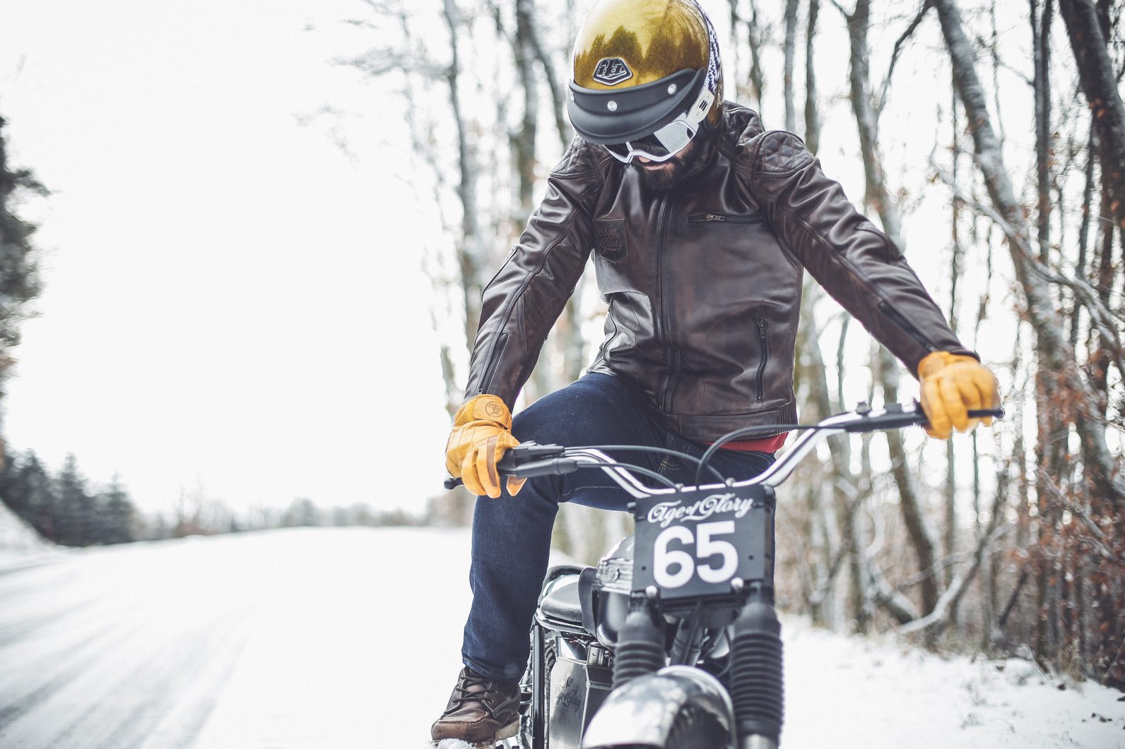 We took my old Triumph T20 Tiger cub from 1965, and it was probably the first time she was riding in the snow… A lot of fun for sure. Here are below some pics of this session…
